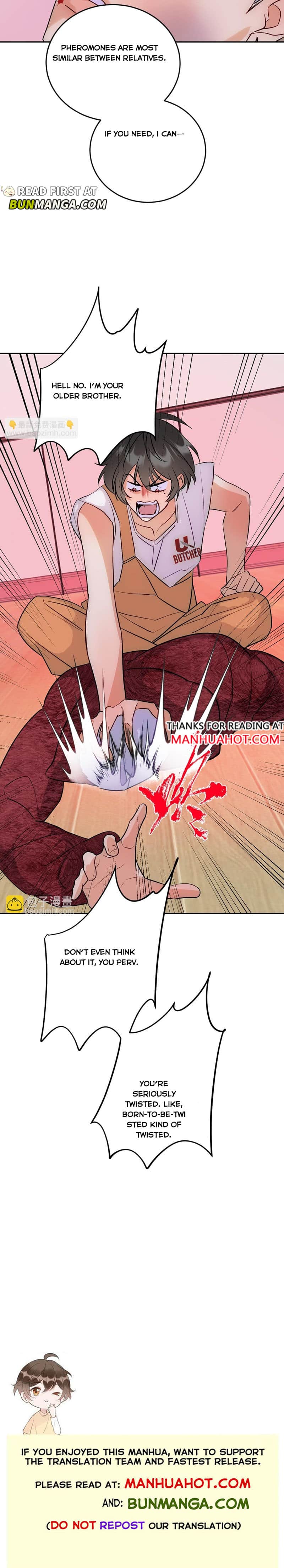 Why does bro want to hit his older brother 😭 i mean i already know from previous chapter that he looked at his brother in a.. inappropriate way.. chill bro thats yo brother. Dont remember if biological or step brother but still crazy bro